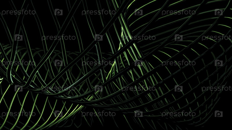 Абстрактные вращающиеся металлические полоски, образующие спираль на черном фоне.Дизайн.Оптическая иллюзия вращающихся волокон