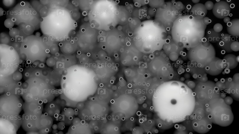 Пролетая сквозь монохромные формы. Дизайн. Круглые размытые фигуры или точки