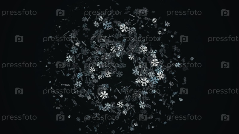 Абстрактный анимированный рождественский фон с красивыми мерцающими снежинками, вращающимися на красочном фоне