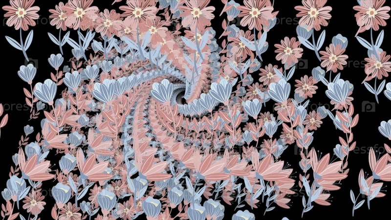 Абстрактные цветы на черном фоне. Анимация цветкового фона. Цветы, расцветающие на цветной линии, черный фон