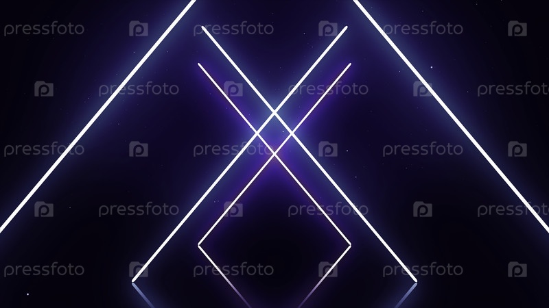 Абстрактные белые неоновые символы образуют геометрическую фигуру на темно-синем фоне