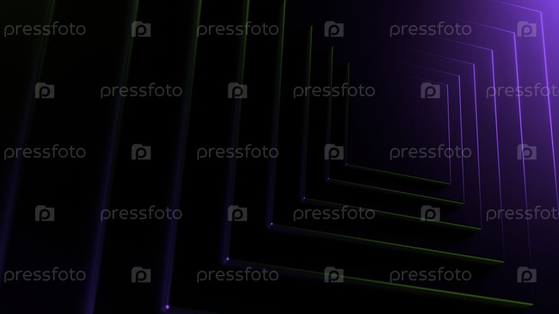 Абстрактный футуристический технологический фон с контрастными огнями, движущимися по кругу. Дизайн. Бесконечный геометрический коридор