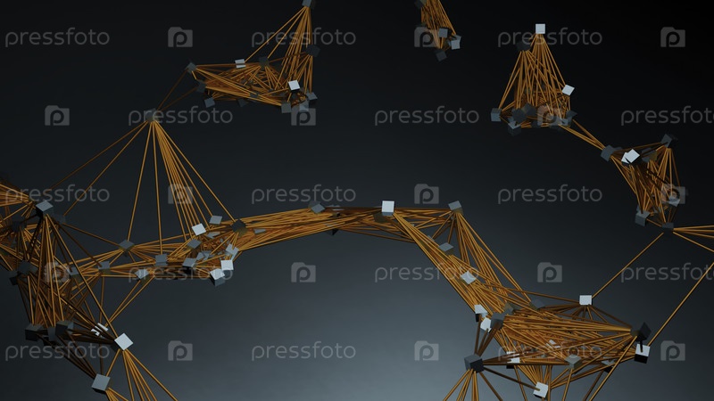 Движение компьютерных сетей из точек и линий. Дизайн. Возникающие и исчезающие нейронные сети в компьютерном пространстве. Формирование связанных линий с точками в Интернете