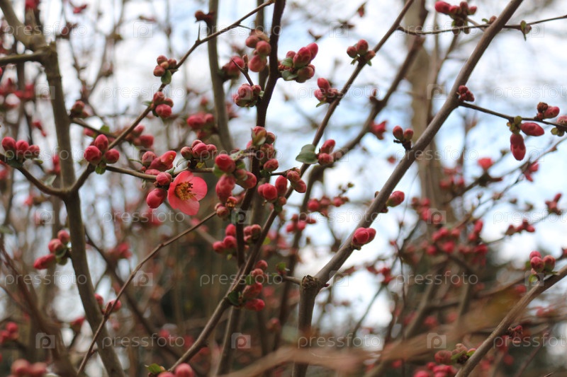 Весеннее цветение японской айвы / Spring blooming of Japanese quince