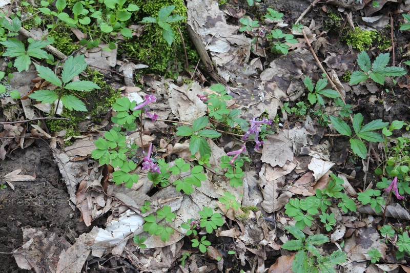 Молодая коридала среди прошлогодней листьев / Young corydalis among last year's foliage