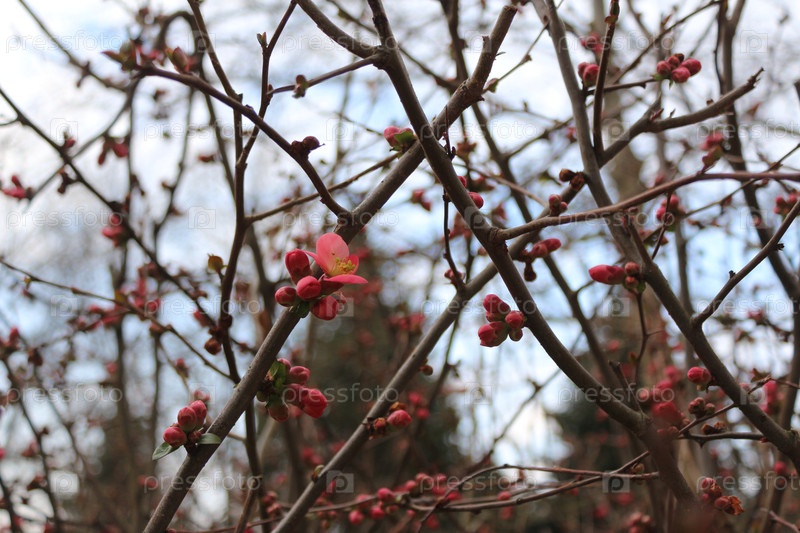 Первый весенний цветок хеномелеса / The first spring flower of Chaenomeles
