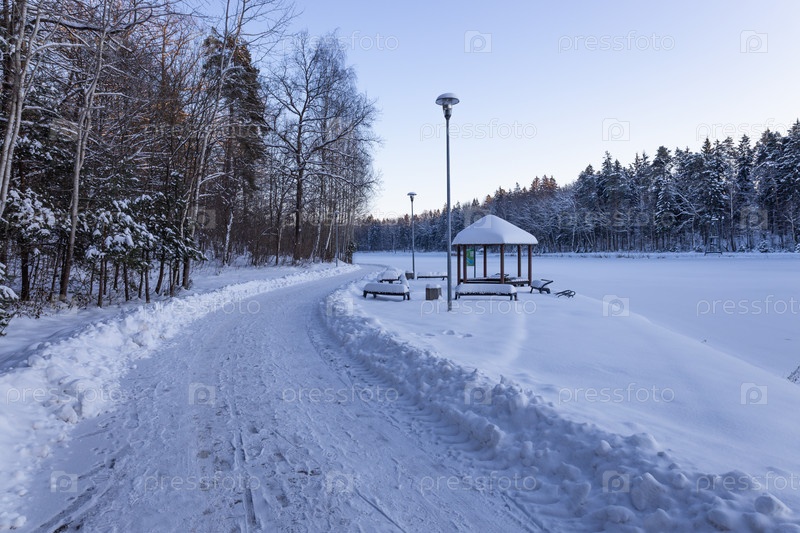 дорога в снежном лесу