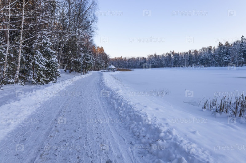 дорога в снежном лесу