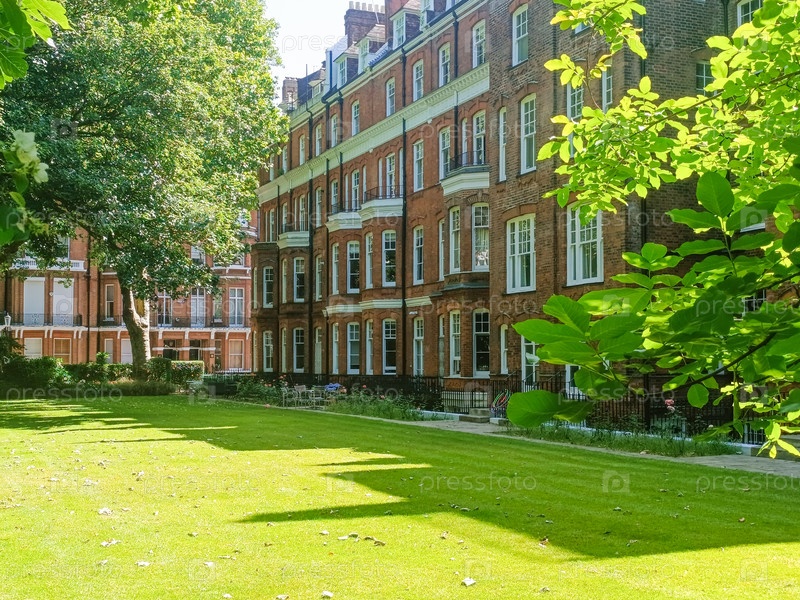 Классический викторианский фасад таунхауса и безмятежная частная площадь сада