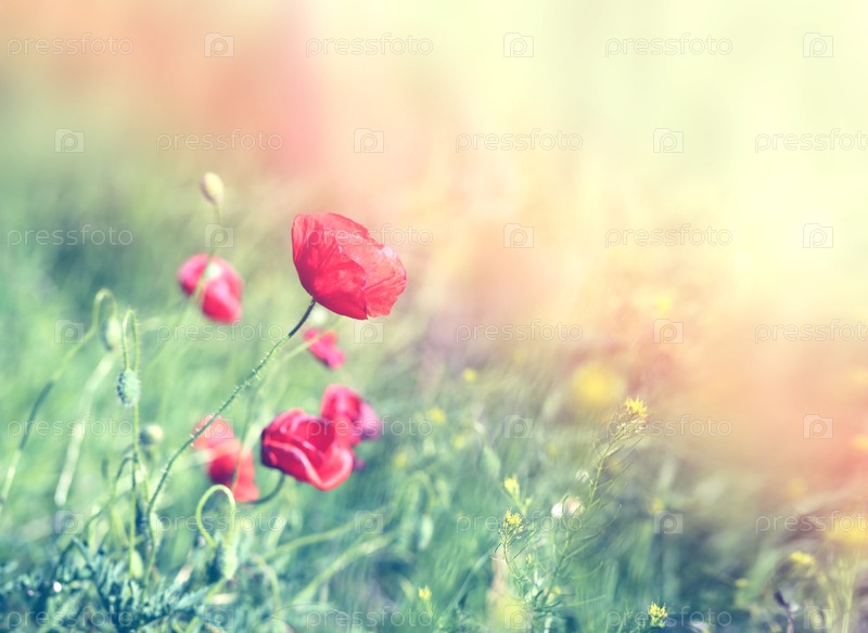 Растущие красные маки