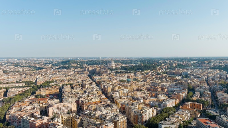 Рим, Италия. Вид на Ватикан. Купол базилики Сан-Пьетро, Полет над городом. Вечернее время, Aerial View