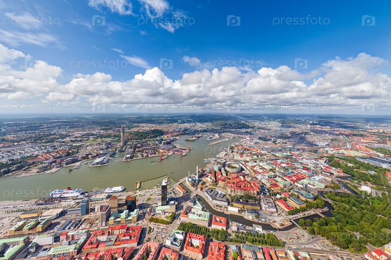 Гетеборг, Швеция Панорама города летом в пасмурную погоду