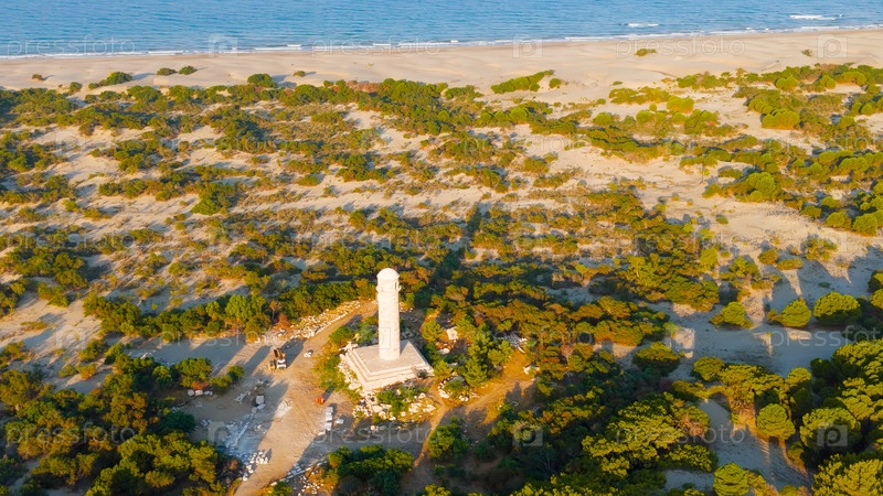 Древний римский маяк с видом на Средиземное море в Патаре, утренние волны и вид на побережье сверху