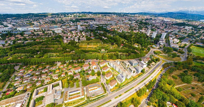 Лозанна, Швейцария. кладбище Боа-де-Во. панорама города летом. вид с воздуха
