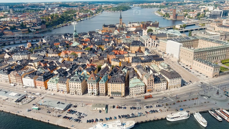 Стокгольм, Швеция. Королевский дворец в Стокгольме. Панорама города. Летний день, Aerial View