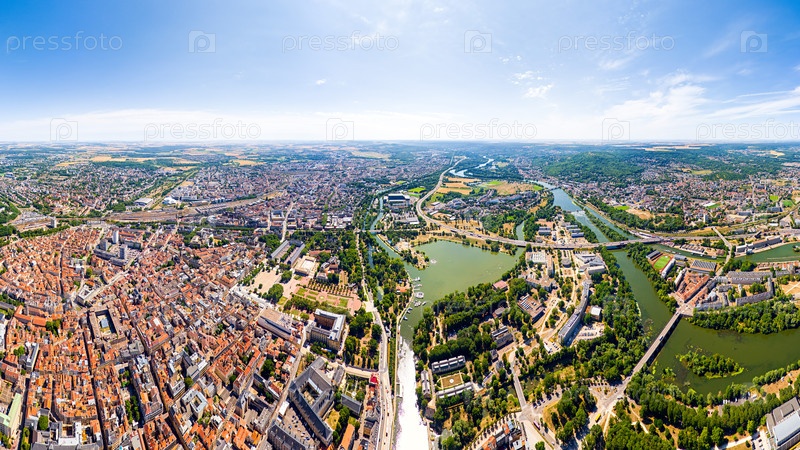 Мец, Франция.Панорама города в летний день.Солнечная погода.Вид с воздуха