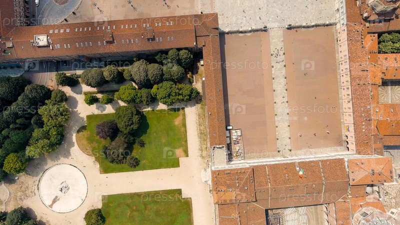 Турин, Италия. Замок Палаццо Мадама. Площадь Пиацца Кастелло. Панорама города. Летний день, Aerial View