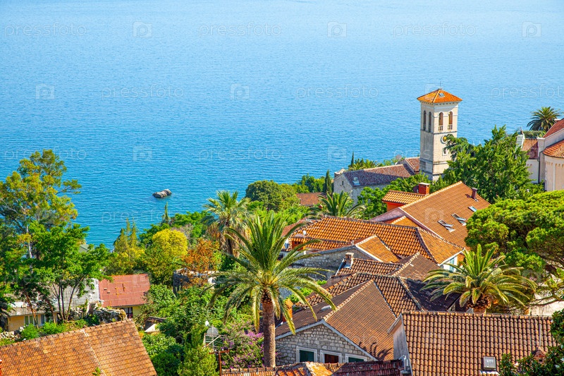 Пейзаж с небольшим городом на берегу моря