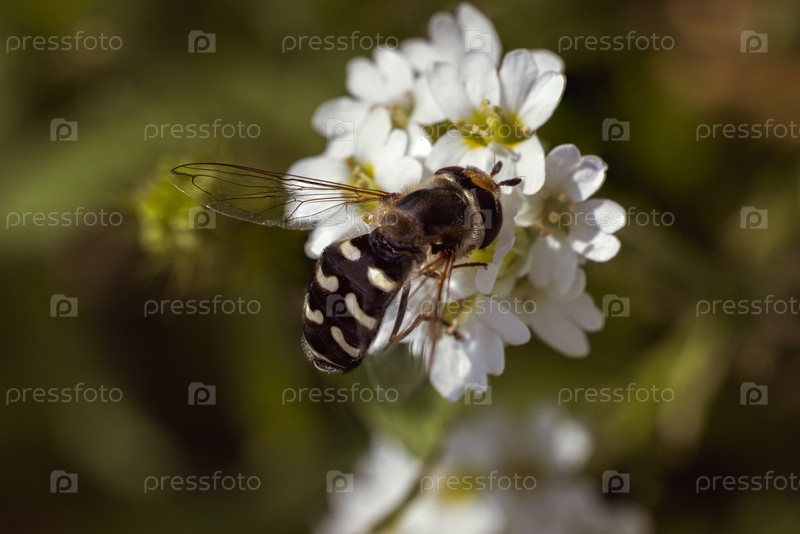 Муха-журчалка на цветке крупный план