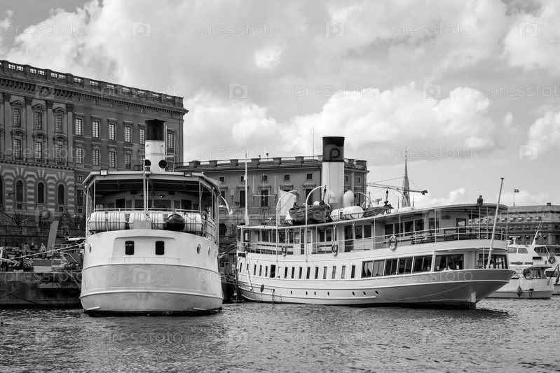 Старые корабли возле Королевского дворца в Стокгольме