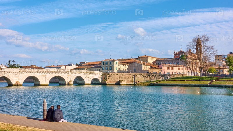 Римини в Италии с Мостом Тиберия и Старым городом