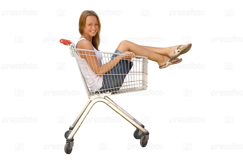 Девушка в тележке для покупок