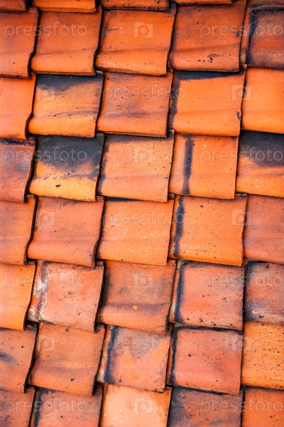 Старые красные глиняные крышные плитки