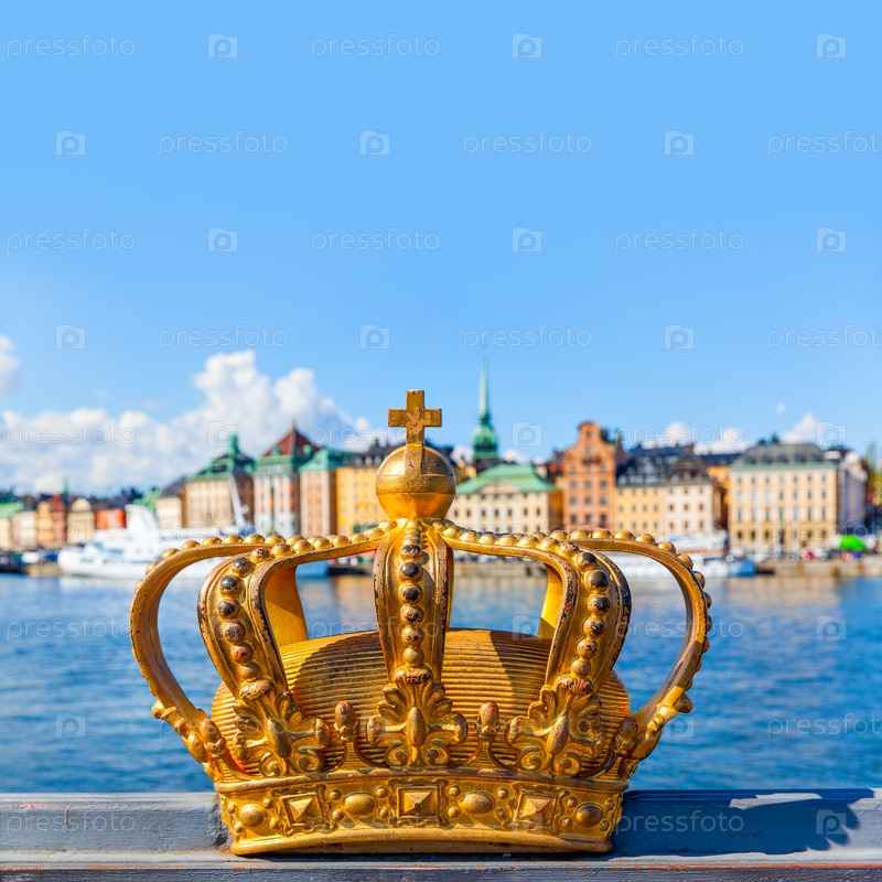 Золотая корона на мосту Skeppsholm в Стокгольме
