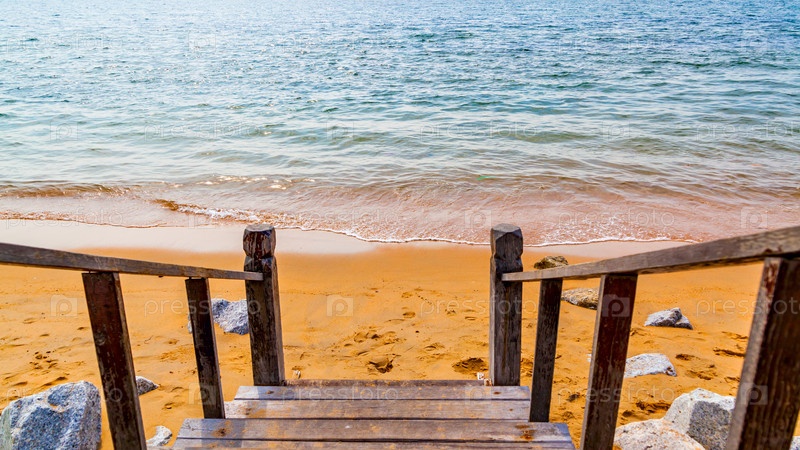 Море и лестницы к песчаному пляжу
