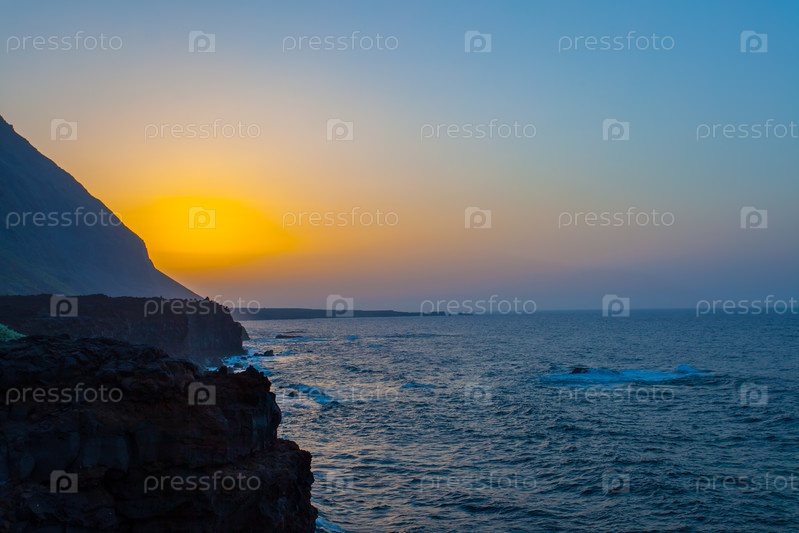 Пейзаж с закатом солнца на острове Эль-Иеро