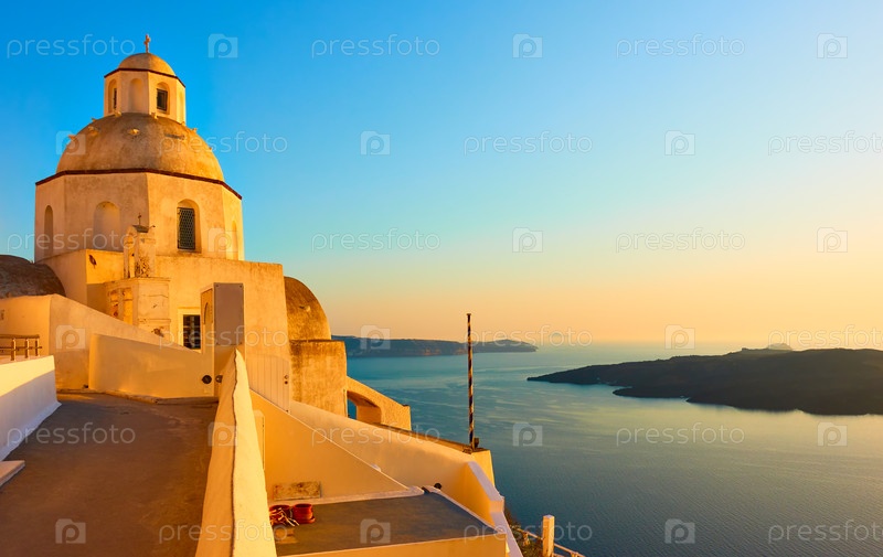 Остров Санторини в Греции при закате солнца