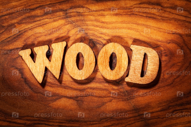 Слово "Wood" - Надпись деревянными буквами