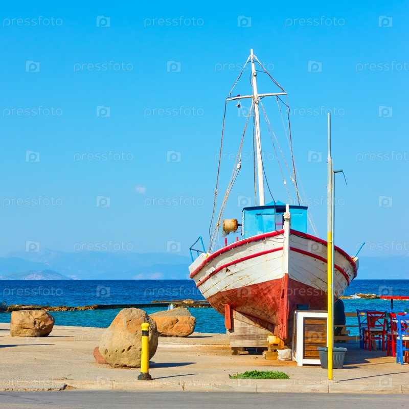 Старый рыбацкий катер на острове Эгина в Греции