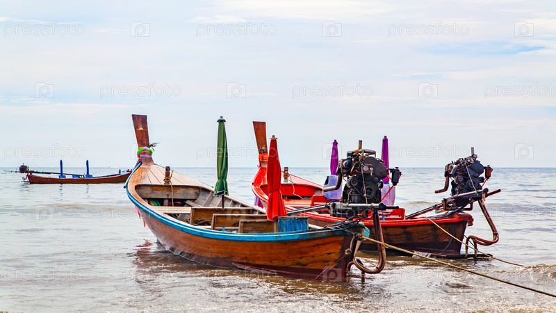 Тайская лодка с длинным хвостом на берегу