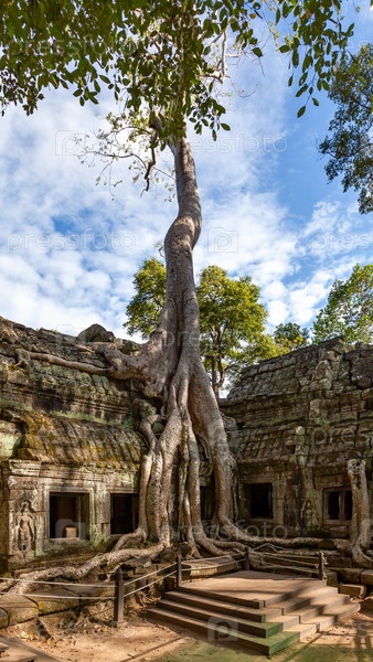Руины древнего храма, окруженные гигантскими корнями