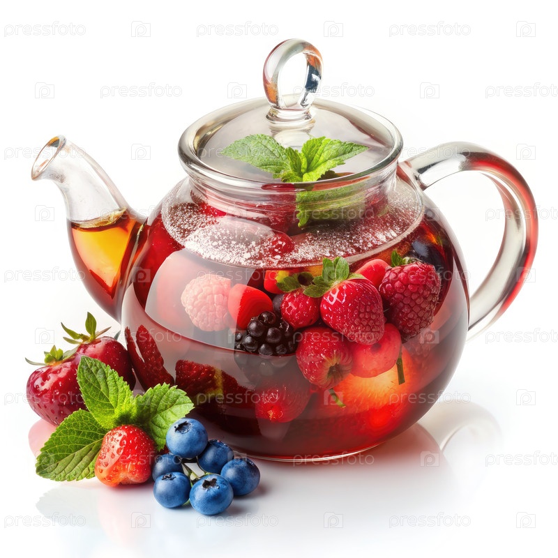 чайник, наполненный свежим ягодным чаем и мятой. генеративная AI Glass