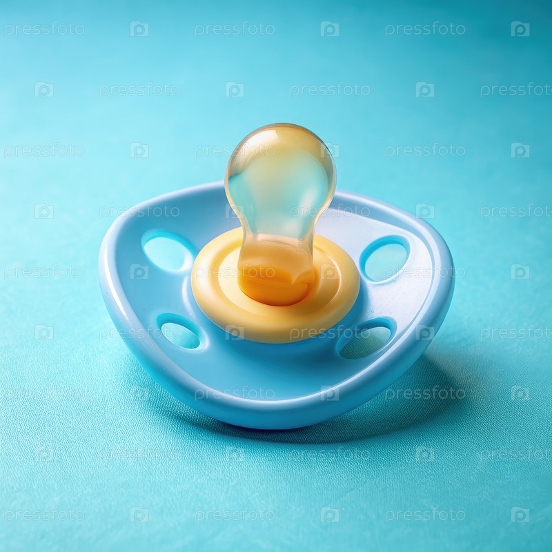 Синий и желтый детский сосок на светло-синем фоне