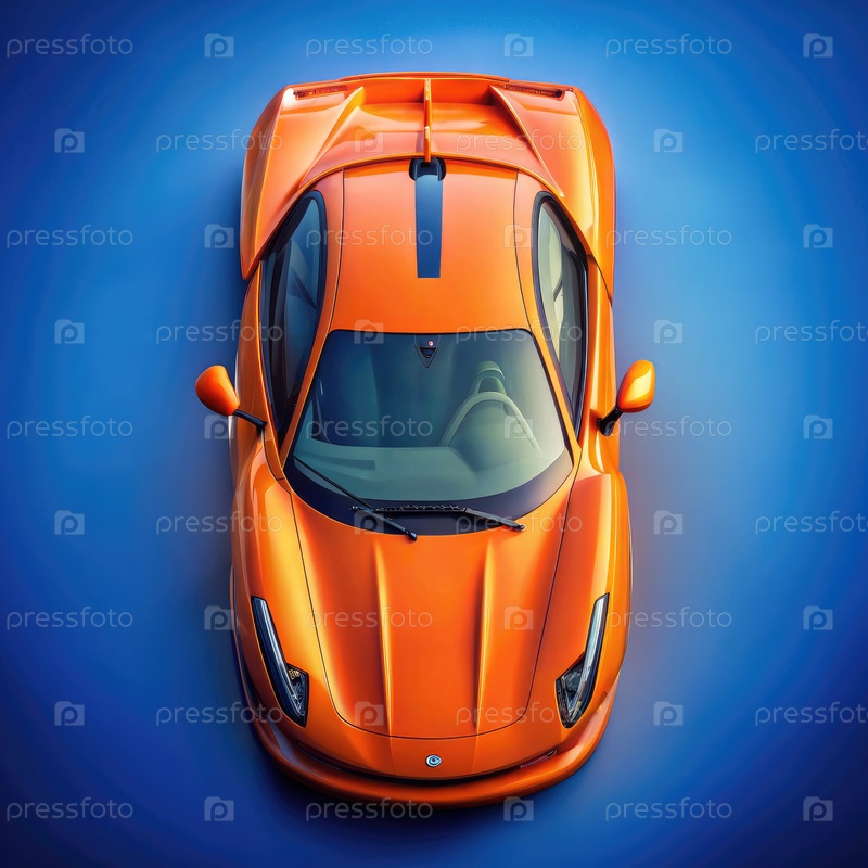 Вид сверху оранжевого спортивного автомобиля на синем фоне