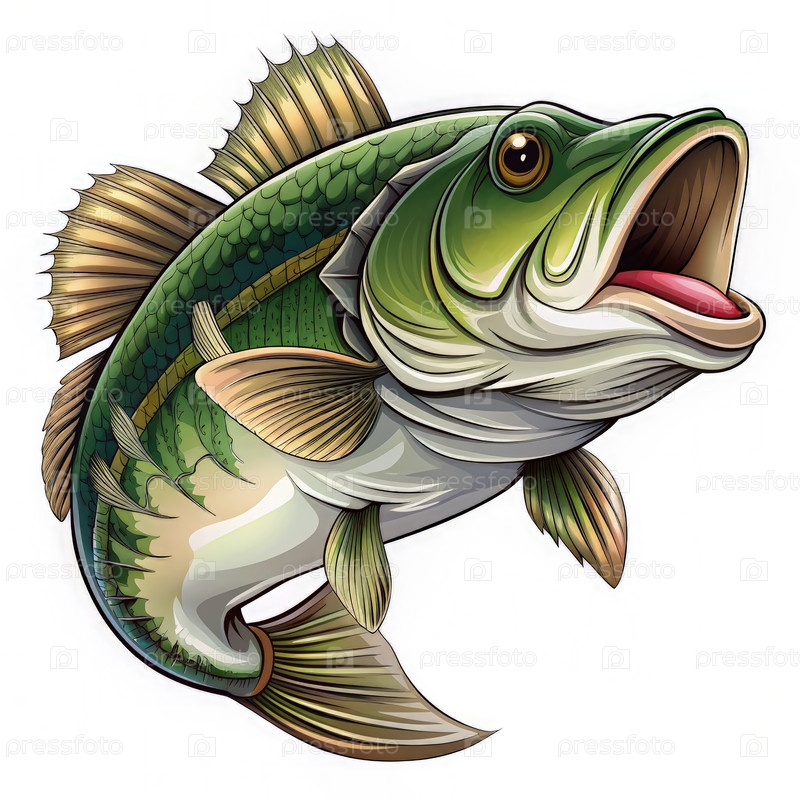 Largemouth Bass Cartoon Illustration for T-Shirt Design. генеративный искусственный интеллект