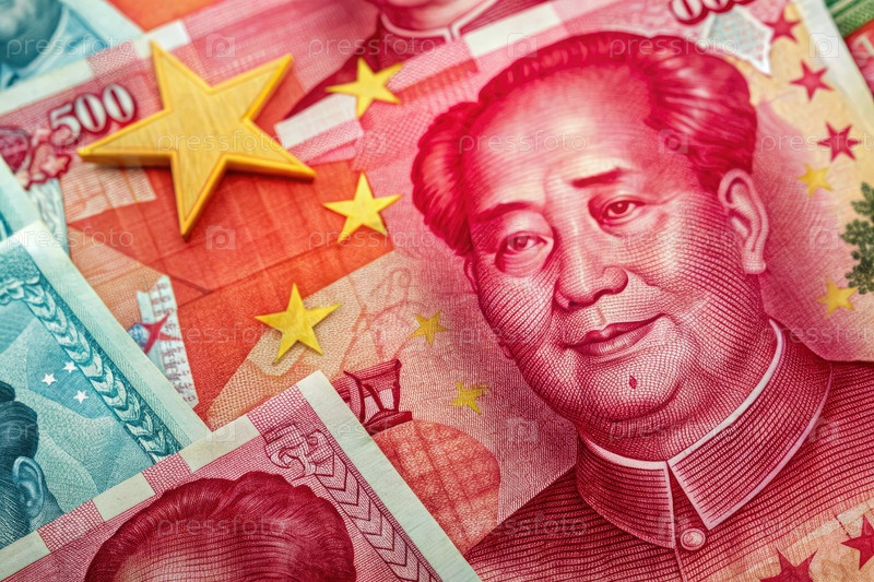 Близкий взгляд на банкноты китайского юаня с изображением Мао Цзедуна