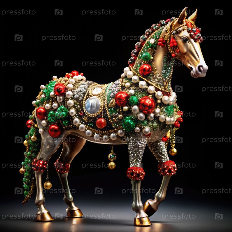 Декоративная фигура рождественского коня, украшенная бусинками и орнаментами
