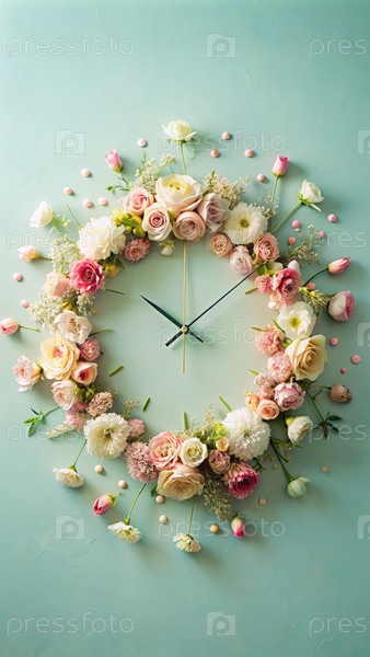Деликатные цветочные часы на светло-синем фоне