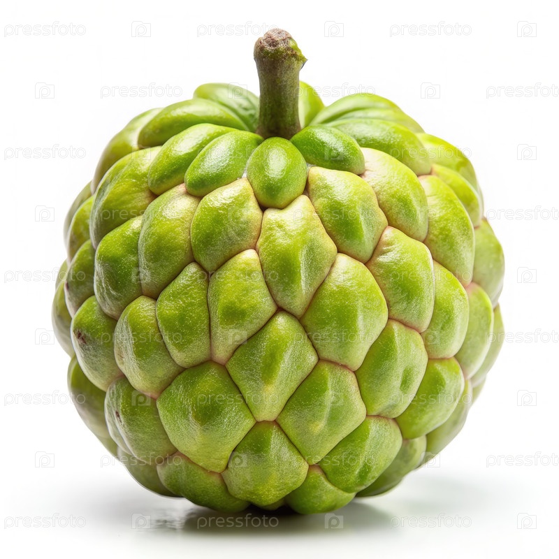 Ближайшее изображение зеленого фрукта Cherimoya на белом фоне