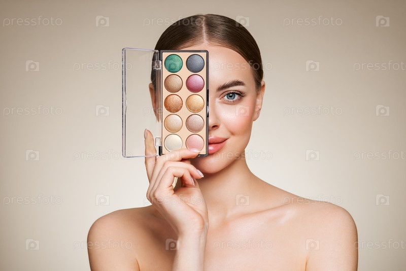 Женщина красоты с макияжной палитрой от теней для глаз