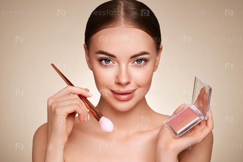 Женщина красоты с макияжной палитрой от теней для глаз