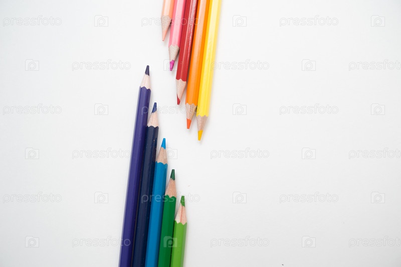 Ряд цветных карандашей на белом фоне
