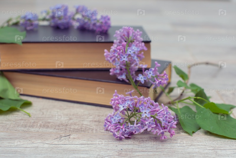 Книги и сирень на столе