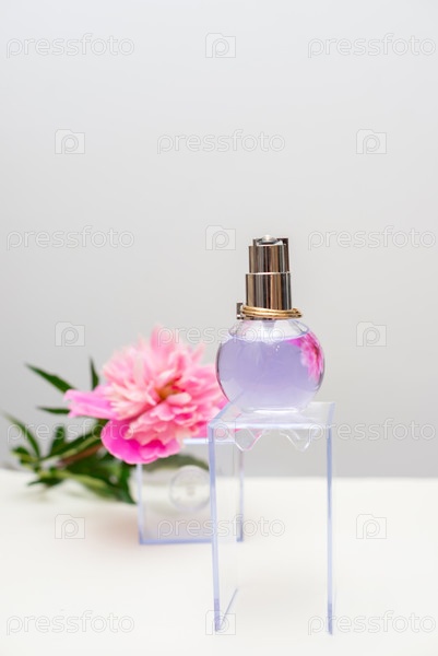 Флакон духов и цветок пиона