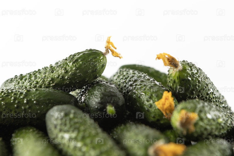 Свежие зеленые огурцы на белом фоне. низкокалорийная пища. сельскохозяйственные овощи. здоровое питание. копирование пространства. изолированный объект
