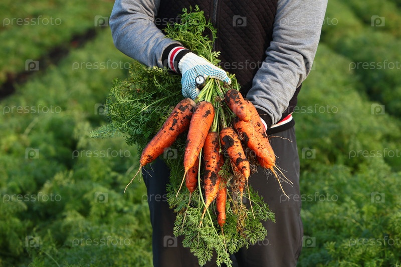 Морковь в руках фермера. Выращивание органических моркоток. Свежесобранные моркови. Осенний сбор урожая. Агропромышленный комплекс. Сельскохозяйственная промышленность